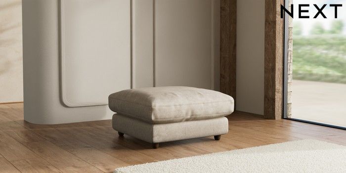 7.3.1 Buy N Premium Farndon Grand Relaxed Sit Extra Large Footstool Plush Chenille Light Natural Wooden Glide - Mid from the Seasons online shop Click here to use our website with more accessibility support, for example screen readers