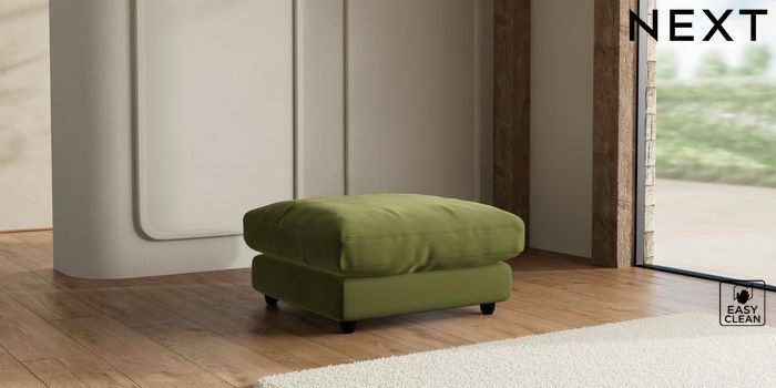 7.3.1 Buy N Premium Farndon Grand Relaxed Sit Extra Large Footstool Plush Velvet Easy Clean Mid Olive Green Wooden Glide - Dark from the Seasons online shop