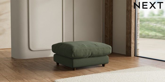 7.3.1 Buy N Premium Farndon Grand Relaxed Sit Extra Large Footstool Relaxed Linen Look Dark Green Wooden Glide - Mid from the Seasons online shop