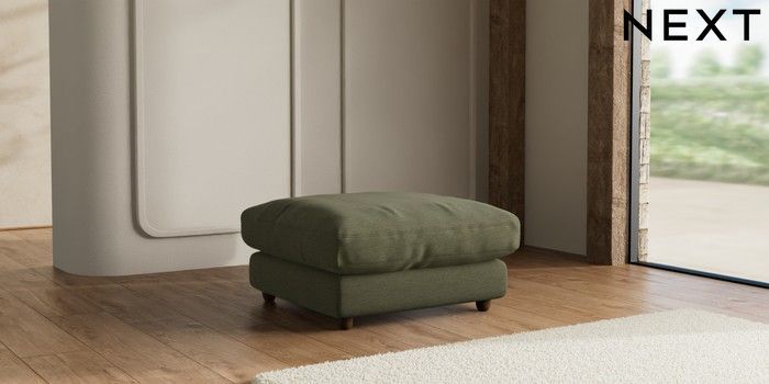 7.3.1 Buy N Premium Farndon Grand Relaxed Sit Extra Large Footstool Ripple Chenille Mid Moss Green Wooden Glide - Mid from the Seasons online shop Click here to use our website with more accessibility support, for example screen readers