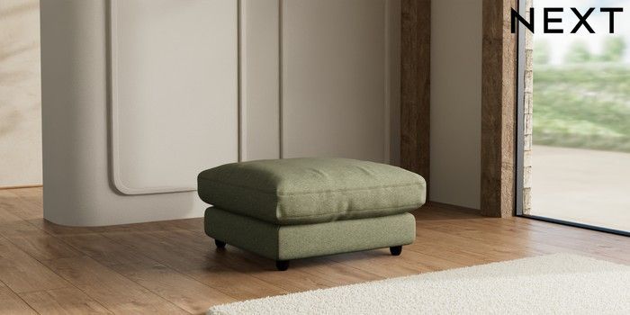 7.3.1 Buy N Premium Farndon Grand Relaxed Sit Extra Large Footstool Tweedy Chenille Mid Moss Green Wooden Glide - Dark from the Seasons online shop