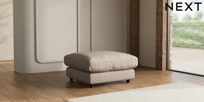 7.3.1 Buy N Premium Farndon Grand Relaxed Sit Extra Large Footstool Tweedy Chenille Mid Natural Wooden Glide - Mid from the Seasons online shop