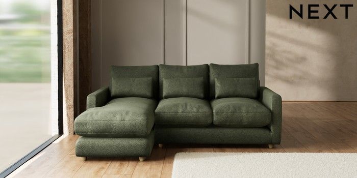 7.3.1 Buy N Premium Farndon Grand Relaxed Sit Medium Sofa Chaise - Left Hand Boucle Chenille Dark Moss Green Wooden Glide - Light from the Seasons online shop Click here to use our website with more accessibility support, for example screen readers