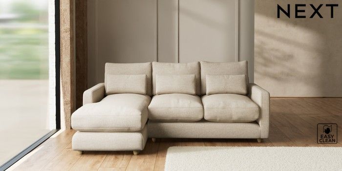 7.3.1 Buy N Premium Farndon Grand Relaxed Sit Medium Sofa Chaise - Left Hand Boucle Weave Easy Clean Dark Natural Wooden Glide - Light from the Seasons online shop Click here to use our website with more accessibility support, for example screen readers