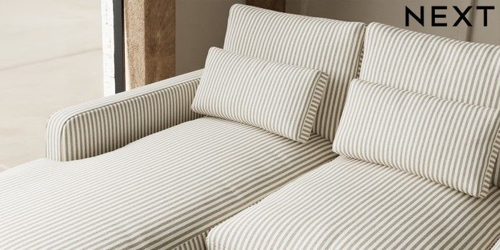 7.3.1 Buy N Premium Farndon Grand Relaxed Sit Medium Sofa Chaise - Left Hand Chenille Stripe Moss Green Wooden Glide - Mid from the Seasons online shop Click here to use our website with more accessibility support, for example screen readers