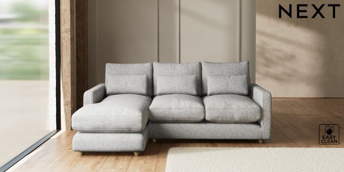 7.3.1 Buy N Premium Farndon Grand Relaxed Sit Medium Sofa Chaise - Left Hand Chunky Boucle Easy Clean Light Grey Wooden Glide - Light from the Seasons online shop Click here to use our website with more accessibility support, for example screen readers