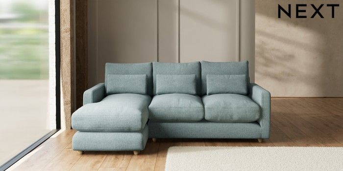 7.3.1 Buy N Premium Farndon Grand Relaxed Sit Medium Sofa Chaise - Left Hand Chunky Chenille Light Teal Green Wooden Glide - Light from the Seasons online shop Click here to use our website with more accessibility support, for example screen readers