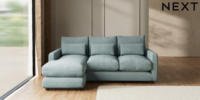 7.3.1 Buy N Premium Farndon Grand Relaxed Sit Medium Sofa Chaise - Left Hand Chunky Chenille Light Teal Green Wooden Glide - Mid from the Seasons online shop Click here to use our website with more accessibility support, for example screen readers