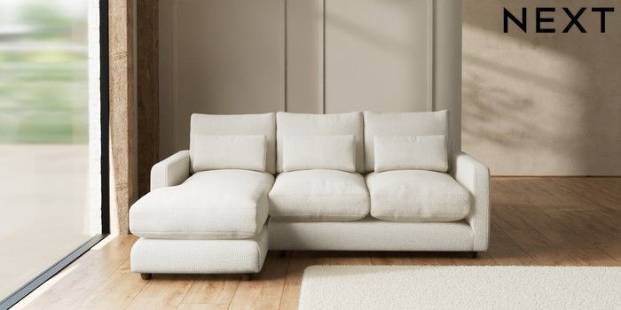 7.3.1 Buy N Premium Farndon Grand Relaxed Sit Medium Sofa Chaise - Left Hand Chunky Texture Oyster Wooden Glide - Mid from the Seasons online shop Click here to use our website with more accessibility support, for example screen readers