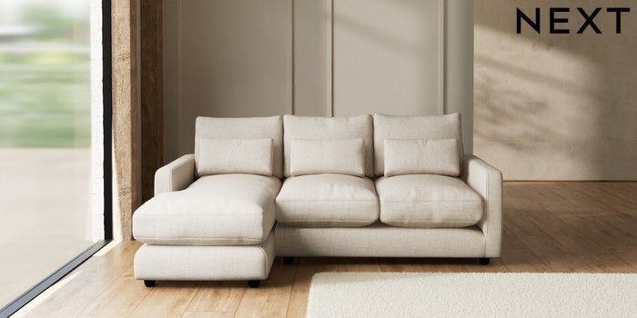 7.3.1 Buy N Premium Farndon Grand Relaxed Sit Medium Sofa Chaise - Left Hand Chunky Weave Mid Natural Wooden Glide - Dark from the Seasons online shop Click here to use our website with more accessibility support, for example screen readers
