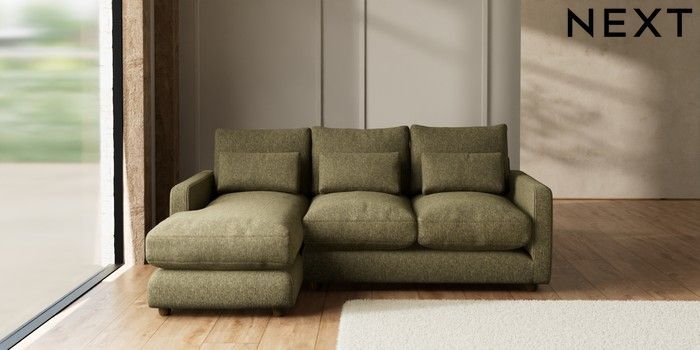 7.3.1 Buy N Premium Farndon Grand Relaxed Sit Medium Sofa Chaise - Left Hand Cotswold Chenille Dark Green Wooden Glide - Mid from the Seasons online shop Click here to use our website with more accessibility support, for example screen readers