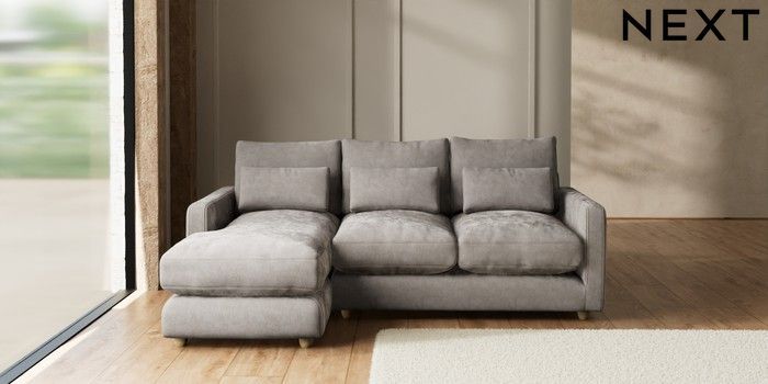 7.3.1 Buy N Premium Farndon Grand Relaxed Sit Medium Sofa Chaise - Left Hand Distressed Velour French Grey Wooden Glide - Light from the Seasons online shop Click here to use our website with more accessibility support, for example screen readers