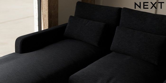 7.3.1 Buy N Premium Farndon Grand Relaxed Sit Medium Sofa Chaise - Left Hand Fine Chenille Easy Clean Black Wooden Glide - Light from the Seasons online shop Click here to use our website with more accessibility support, for example screen readers