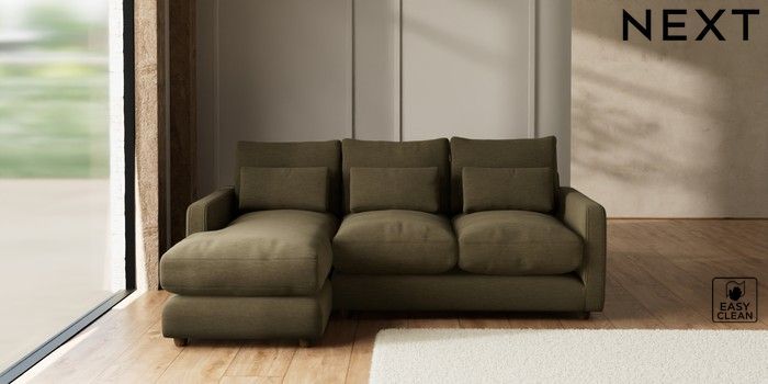 7.3.1 Buy N Premium Farndon Grand Relaxed Sit Medium Sofa Chaise - Left Hand Fine Chenille Easy Clean Dark Moss Green Wooden Glide - Mid from the Seasons online shop Click here to use our website with more accessibility support, for example screen readers