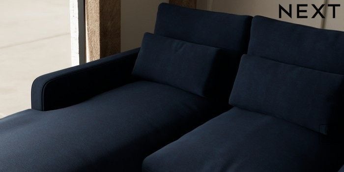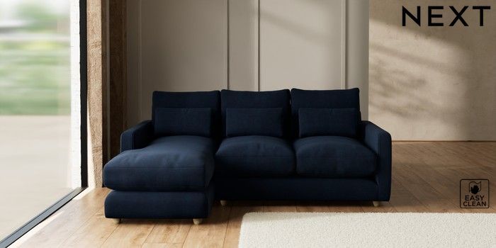 7.3.1 Buy N Premium Farndon Grand Relaxed Sit Medium Sofa Chaise - Left Hand Fine Chenille Easy Clean Dark Navy Blue Wooden Glide - Light from the Seasons online shop Click here to use our website with more accessibility support, for example screen readers