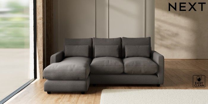 7.3.1 Buy N Premium Farndon Grand Relaxed Sit Medium Sofa Chaise - Left Hand Fine Chenille Easy Clean Dark Smoke Grey Wooden Glide - Dark from the Seasons online shop Click here to use our website with more accessibility support, for example screen readers