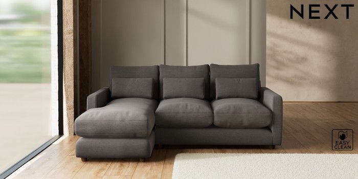 7.3.1 Buy N Premium Farndon Grand Relaxed Sit Medium Sofa Chaise - Left Hand Fine Chenille Easy Clean Dark Smoke Grey Wooden Glide - Mid from the Seasons online shop Click here to use our website with more accessibility support, for example screen readers