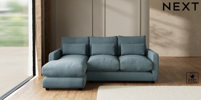 7.3.1 Buy N Premium Farndon Grand Relaxed Sit Medium Sofa Chaise - Left Hand Fine Chenille Easy Clean Mid Blue Wooden Glide - Dark from the Seasons online shop Click here to use our website with more accessibility support, for example screen readers