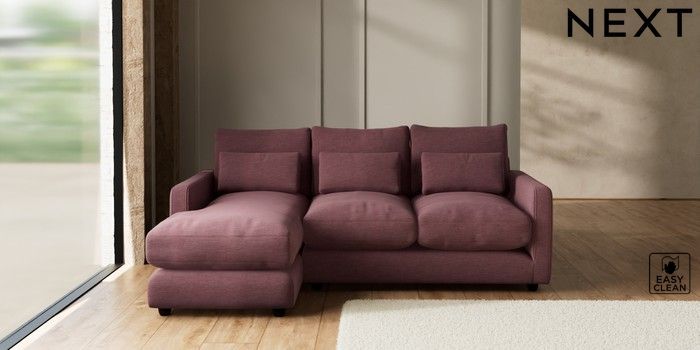 7.3.1 Buy N Premium Farndon Grand Relaxed Sit Medium Sofa Chaise - Left Hand Fine Chenille Easy Clean Mid Mulberry Purple Wooden Glide - Dark from the Seasons online shop