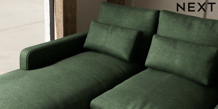 7.3.1 Buy N Premium Farndon Grand Relaxed Sit Medium Sofa Chaise - Left Hand Luxe Chenille Dark Green Wooden Glide - Light from the Seasons online shop Click here to use our website with more accessibility support, for example screen readers