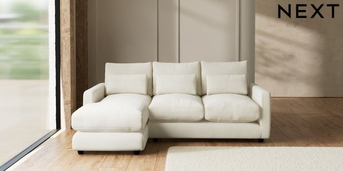 7.3.1 Buy N Premium Farndon Grand Relaxed Sit Medium Sofa Chaise - Left Hand Luxe Chenille Oyster Wooden Glide - Dark from the Seasons online shop Click here to use our website with more accessibility support, for example screen readers