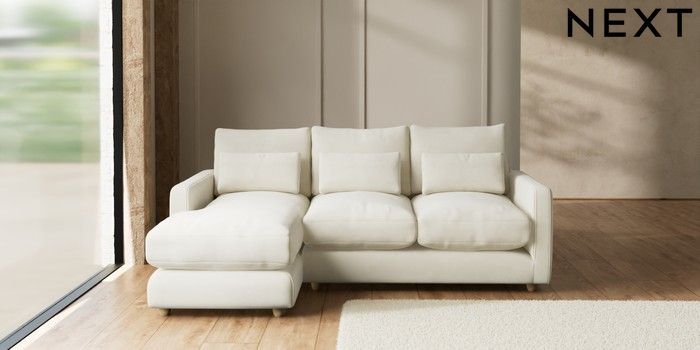 7.3.1 Buy N Premium Farndon Grand Relaxed Sit Medium Sofa Chaise - Left Hand Luxe Chenille Oyster Wooden Glide - Light from the Seasons online shop Click here to use our website with more accessibility support, for example screen readers