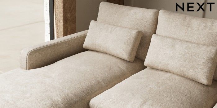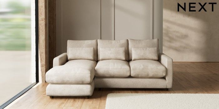 7.3.1 Buy N Premium Farndon Grand Relaxed Sit Medium Sofa Chaise - Left Hand Plush Chenille Light Natural Wooden Glide - Mid from the Seasons online shop Click here to use our website with more accessibility support, for example screen readers