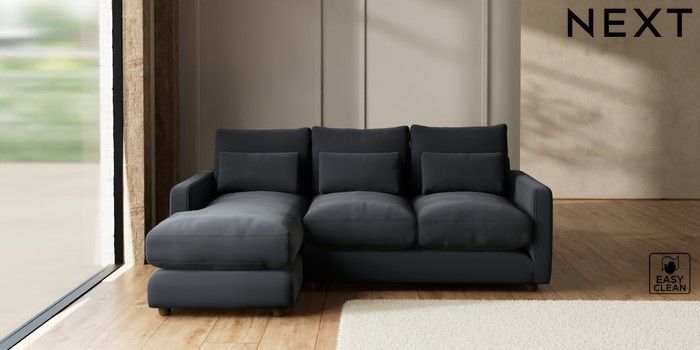 7.3.1 Buy N Premium Farndon Grand Relaxed Sit Medium Sofa Chaise - Left Hand Plush Velvet Easy Clean Charcoal Grey Wooden Glide - Mid from the Seasons online shop
