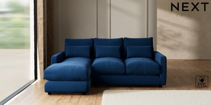 7.3.1 Buy N Premium Farndon Grand Relaxed Sit Medium Sofa Chaise - Left Hand Plush Velvet Easy Clean Navy Blue Wooden Glide - Dark from the Seasons online shop