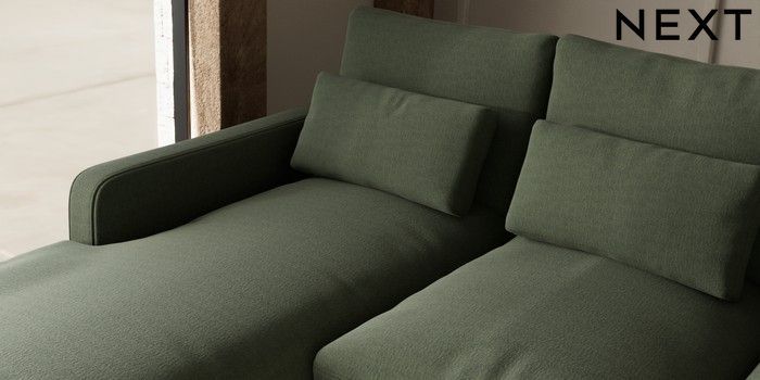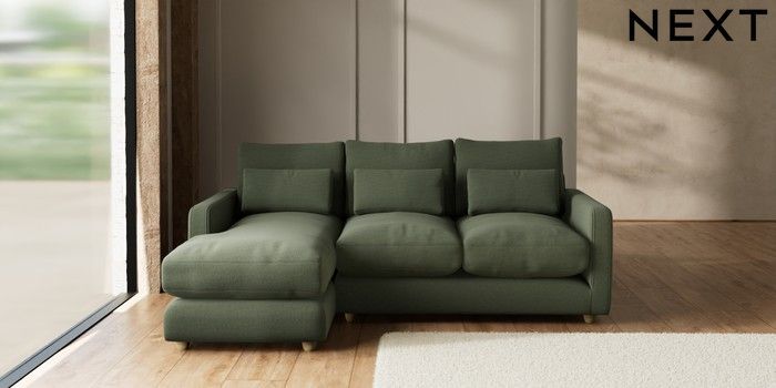7.3.1 Buy N Premium Farndon Grand Relaxed Sit Medium Sofa Chaise - Left Hand Relaxed Linen Look Dark Green Wooden Glide - Light from the Seasons online shop Click here to use our website with more accessibility support, for example screen readers