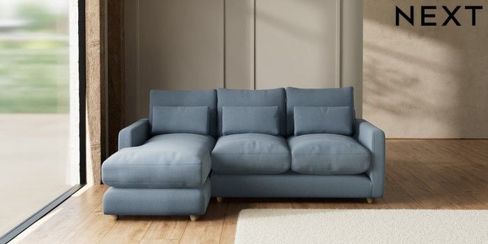 7.3.1 Buy N Premium Farndon Grand Relaxed Sit Medium Sofa Chaise - Left Hand Relaxed Linen Look Mid Blue Wooden Glide - Light from the Seasons online shop Click here to use our website with more accessibility support, for example screen readers