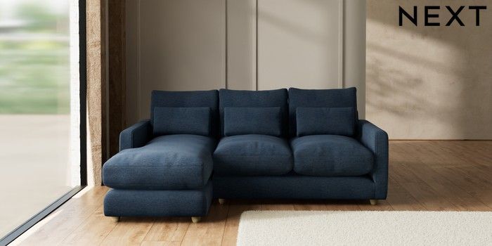 7.3.1 Buy N Premium Farndon Grand Relaxed Sit Medium Sofa Chaise - Left Hand Ripple Chenille Dark Blue Wooden Glide - Light from the Seasons online shop Click here to use our website with more accessibility support, for example screen readers