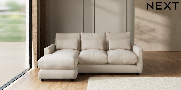 7.3.1 Buy N Premium Farndon Grand Relaxed Sit Medium Sofa Chaise - Left Hand Studio Chenille Oyster Wooden Glide - Dark from the Seasons online shop Click here to use our website with more accessibility support, for example screen readers