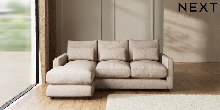7.3.1 Buy N Premium Farndon Grand Relaxed Sit Medium Sofa Chaise - Left Hand Tweedy Chenille Mid Natural Wooden Glide - Mid from the Seasons online shop Click here to use our website with more accessibility support, for example screen readers