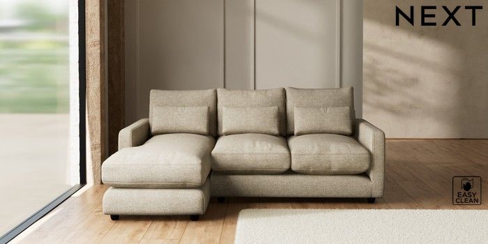 7.3.1 Buy N Premium Farndon Grand Relaxed Sit Medium Sofa Chaise - Left Hand Woven Chenille Easy Clean Mid Natural Wooden Glide - Dark from the Seasons online shop Click here to use our website with more accessibility support, for example screen readers