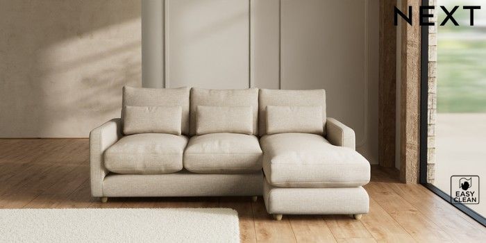 7.3.1 Buy N Premium Farndon Grand Relaxed Sit Medium Sofa Chaise - Right Hand Boucle Weave Easy Clean Dark Natural Wooden Glide - Light from the Seasons online shop