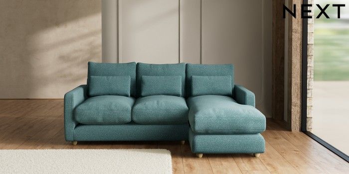 7.3.1 Buy N Premium Farndon Grand Relaxed Sit Medium Sofa Chaise - Right Hand Chunky Chenille Mid Teal Green Wooden Glide - Light from the Seasons online shop Click here to use our website with more accessibility support, for example screen readers