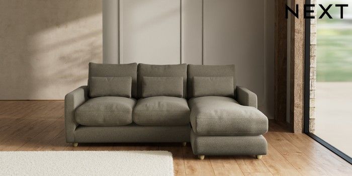 7.3.1 Buy N Premium Farndon Grand Relaxed Sit Medium Sofa Chaise - Right Hand Chunky Marl Light Olive Green Wooden Glide - Light from the Seasons online shop Click here to use our website with more accessibility support, for example screen readers