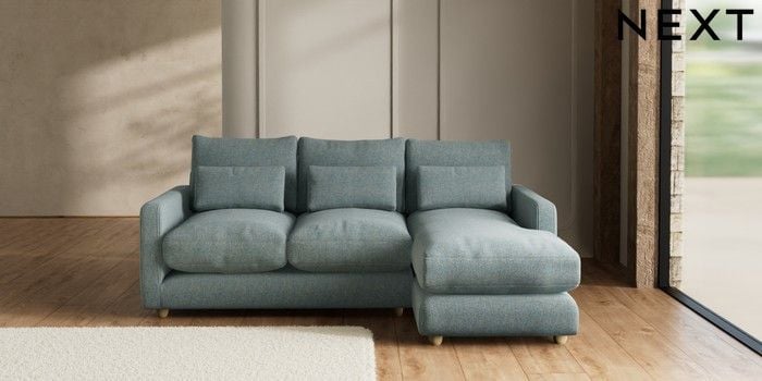 7.3.1 Buy N Premium Farndon Grand Relaxed Sit Medium Sofa Chaise - Right Hand Chunky Marl Mid Blue Wooden Glide - Light from the Seasons online shop Click here to use our website with more accessibility support, for example screen readers