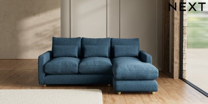7.3.1 Buy N Premium Farndon Grand Relaxed Sit Medium Sofa Chaise - Right Hand Cotswold Chenille Dark Blue Wooden Glide - Light from the Seasons online shop Click here to use our website with more accessibility support, for example screen readers