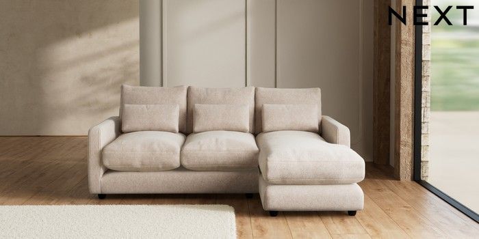 7.3.1 Buy N Premium Farndon Grand Relaxed Sit Medium Sofa Chaise - Right Hand Cotswold Chenille Light Natural Wooden Glide - Dark from the Seasons online shop Click here to use our website with more accessibility support, for example screen readers