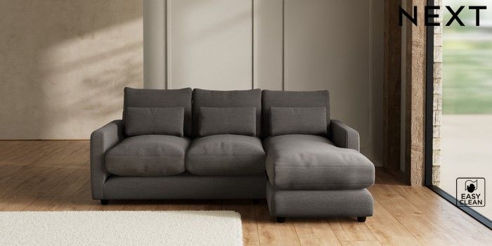 7.3.1 Buy N Premium Farndon Grand Relaxed Sit Medium Sofa Chaise - Right Hand Fine Chenille Easy Clean Dark Smoke Grey Wooden Glide - Dark from the Seasons online shop Click here to use our website with more accessibility support, for example screen readers