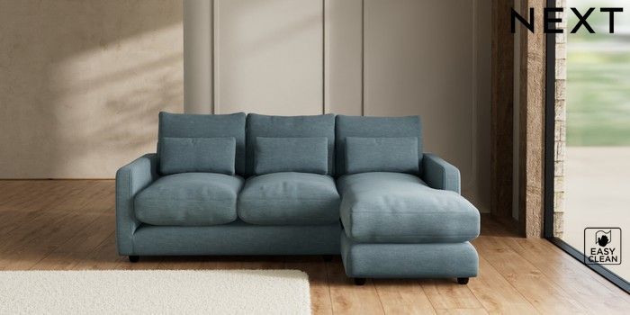 7.3.1 Buy N Premium Farndon Grand Relaxed Sit Medium Sofa Chaise - Right Hand Fine Chenille Easy Clean Mid Blue Wooden Glide - Dark from the Seasons online shop Click here to use our website with more accessibility support, for example screen readers