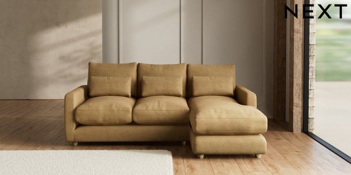 7.3.1 Buy N Premium Farndon Grand Relaxed Sit Medium Sofa Chaise - Right Hand Luxe Chenille Honey Yellow Wooden Glide - Light from the Seasons online shop Click here to use our website with more accessibility support, for example screen readers