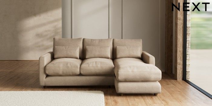 7.3.1 Buy N Premium Farndon Grand Relaxed Sit Medium Sofa Chaise - Right Hand Luxe Chenille Mid Camel Beige Wooden Glide - Mid from the Seasons online shop Click here to use our website with more accessibility support, for example screen readers