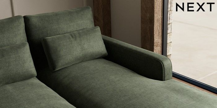 7.3.1 Buy N Premium Farndon Grand Relaxed Sit Medium Sofa Chaise - Right Hand Luxe Chenille Mid Green Wooden Glide - Dark from the Seasons online shop Click here to use our website with more accessibility support, for example screen readers