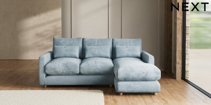 7.3.1 Buy N Premium Farndon Grand Relaxed Sit Medium Sofa Chaise - Right Hand Plush Chenille Light Blue Wooden Glide - Light from the Seasons online shop Click here to use our website with more accessibility support, for example screen readers