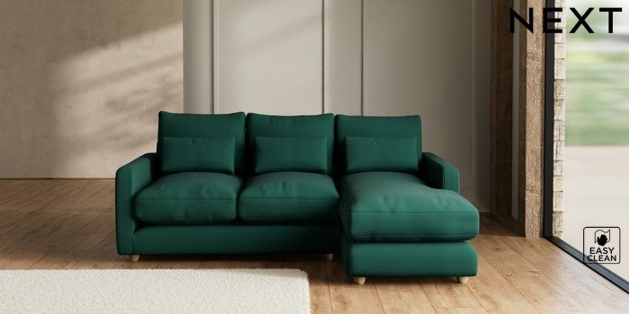 7.3.1 Buy N Premium Farndon Grand Relaxed Sit Medium Sofa Chaise - Right Hand Plush Velvet Easy Clean Bottle Green Wooden Glide - Light from the Seasons online shop