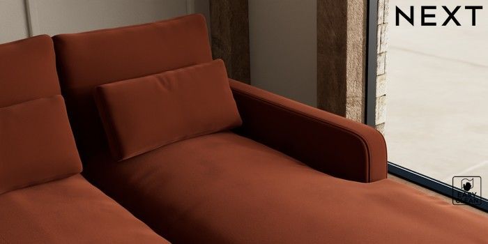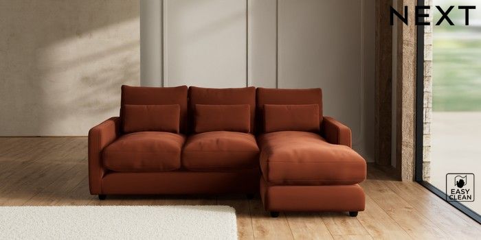 7.3.1 Buy N Premium Farndon Grand Relaxed Sit Medium Sofa Chaise - Right Hand Plush Velvet Easy Clean Ginger Orange Wooden Glide - Dark from the Seasons online shop
