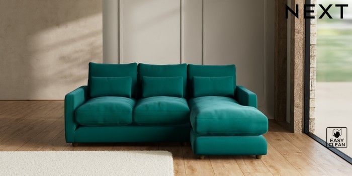 7.3.1 Buy N Premium Farndon Grand Relaxed Sit Medium Sofa Chaise - Right Hand Plush Velvet Easy Clean Juniper Green Wooden Glide - Mid from the Seasons online shop